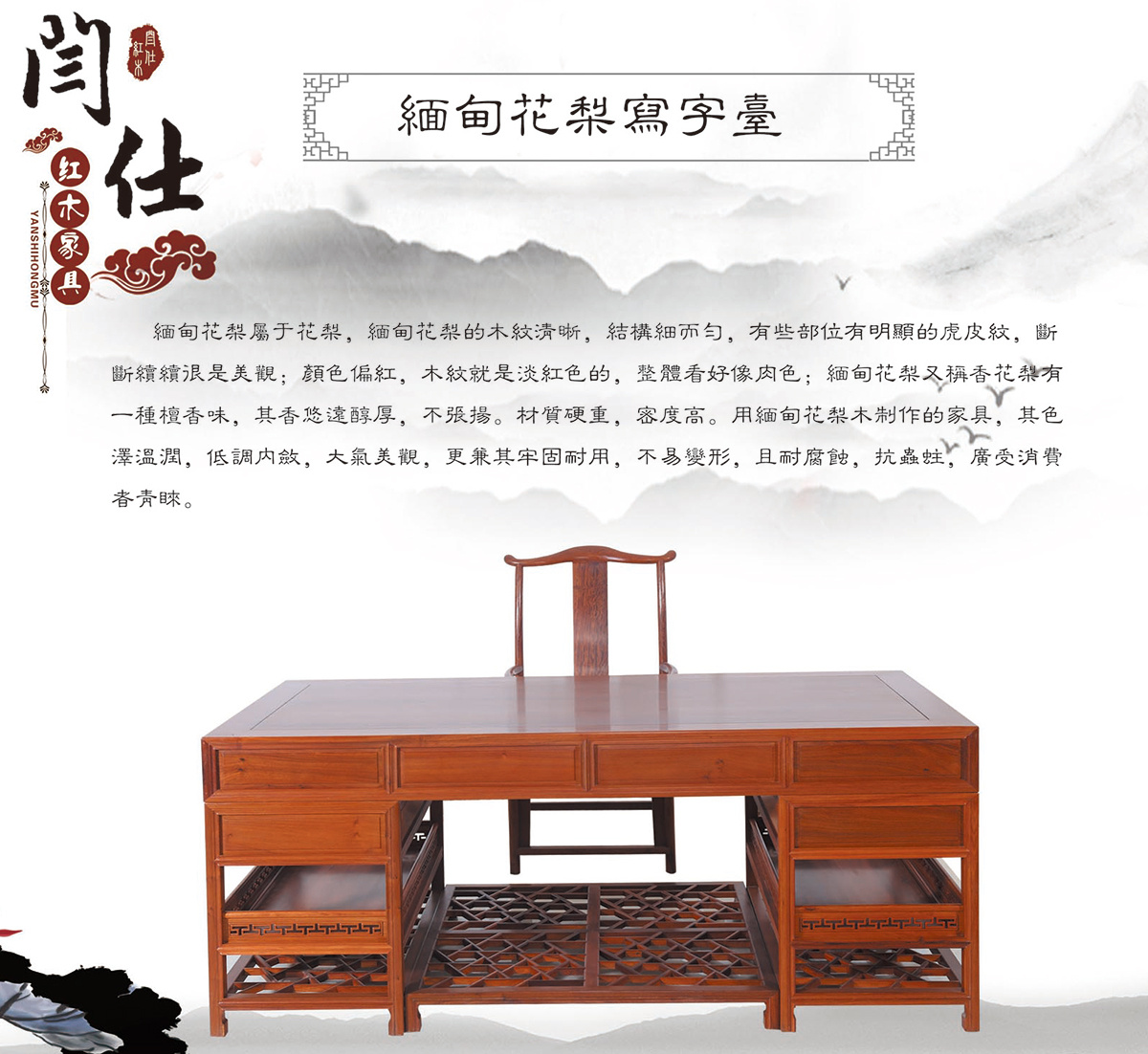 緬甸花梨辦公桌