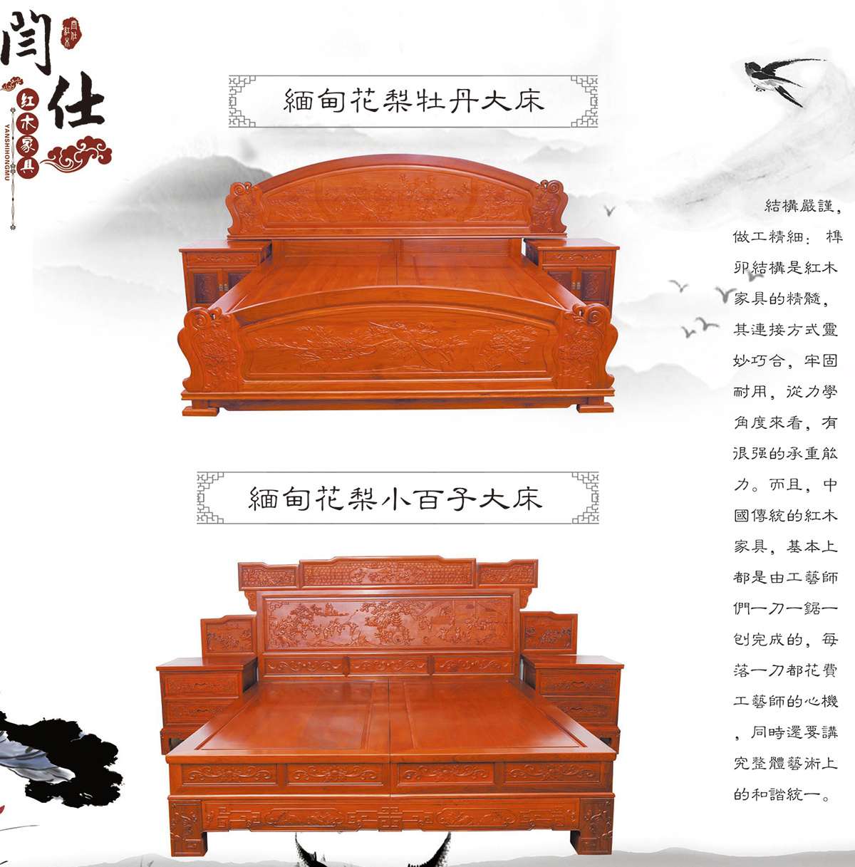 緬甸花梨山水大床